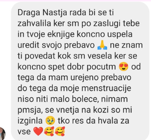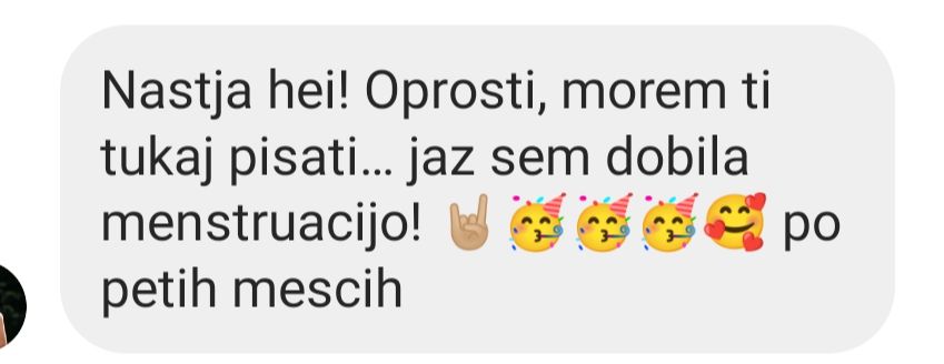 Prvič po ne vem koliko letih imam nebolečo menstruacijo. Lahko jočem od sreče! 😭 Tvoj program je bila najboljša investicija v življenju!