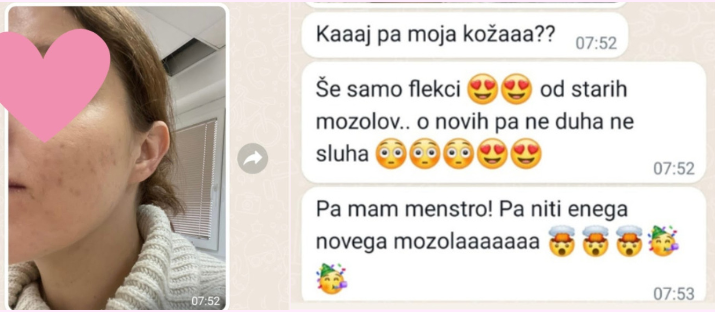 Prvič sem brez migrene, brez krčev, brez znakov PMS. 😲😲 Na koži še samo flekci od starih mozoljev. Sploh nisem vedela, da bo menstruacija prišla.